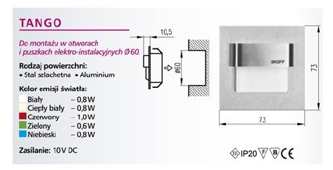 | Sposób montażu | w puszce elektro-instalacyjnej Ø60, w otworze Ø60 |
