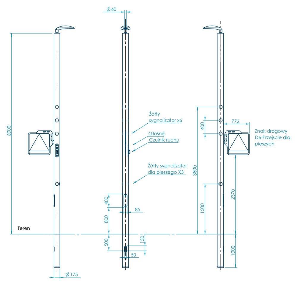 Aktywne przejście dla pieszych WalkPole 6m 230V