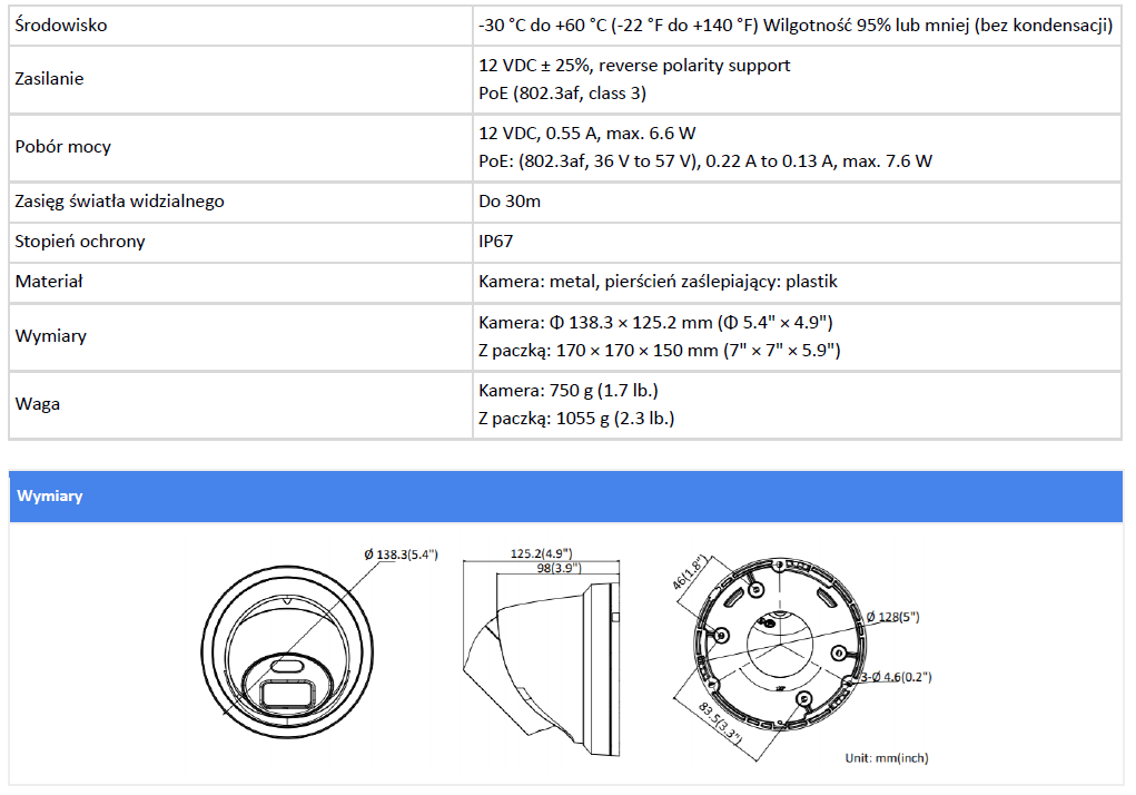 ● oświetlacz LED: do 30 m