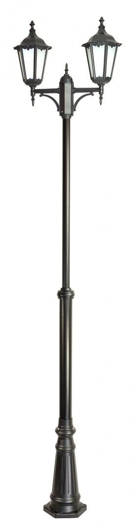 Stylowa lampa masztowa Retro o klasycznym wzornictwie, aluminiowa, z dwoma kloszami ze szkłem piaskowanym.