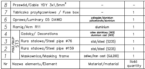 Latarnia ST3/68, hc-4500 - słup + przewody + wysięgnik R11 + oprawa 05/E27 x