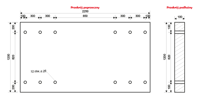 Wymiary płyty ustojowej w mm
