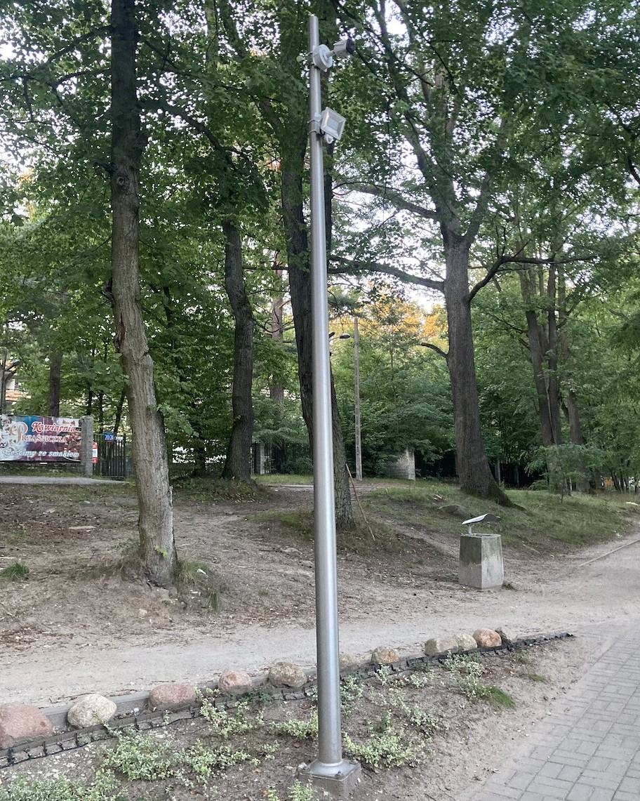 Słup aluminiowy z uchwytem do montażu kamery i fundamentem