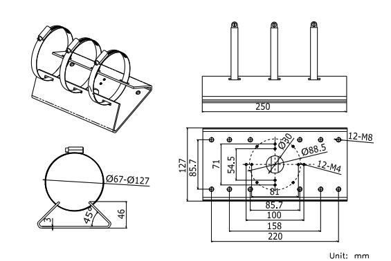 | Otworowanie pod osprzęt | OPCJONALNIE wg życzenia klienta – góra pod kamery, dół pod BOX-a. |