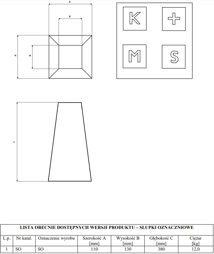 Słupki oznaczeniowe SO - K / M / S / +