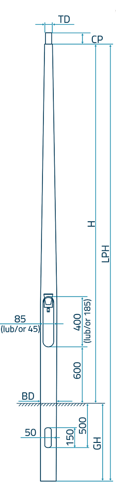 LPH[m]- wysokość słupa wraz z częścią wkopywaną