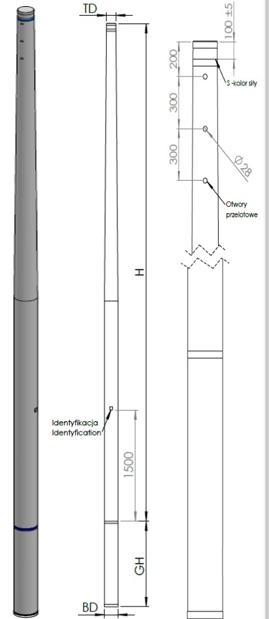 Słup energetyczny (żerdź) wykonany jest z kompozytów poliestrowych wzmacnianych włóknem szklanym