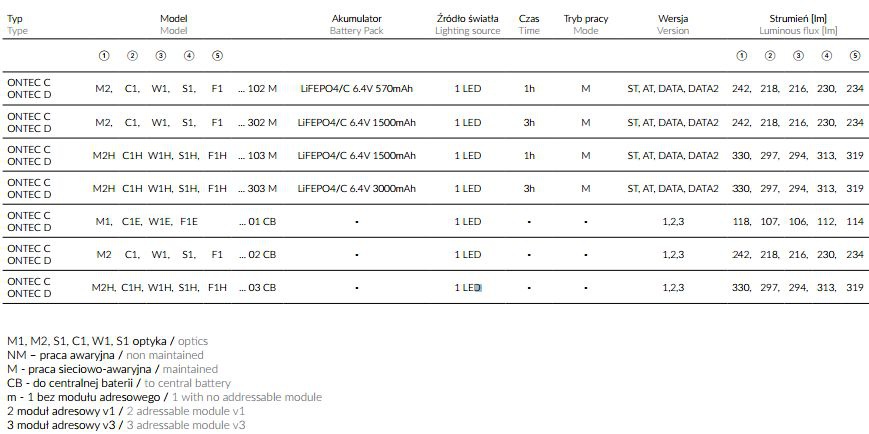 Oprawy awaryjne Ontec C M1/M2 podtynkowe