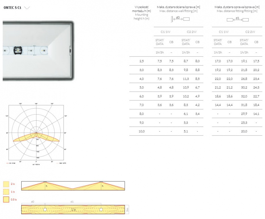 Oprawa wyposażona optykę do korytarzy / contains the optics for corridors