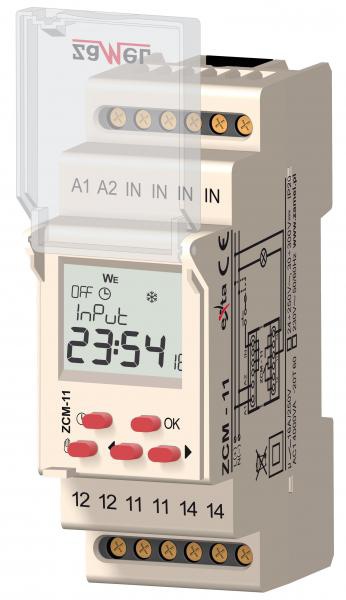 Programowalne zegary sterujące służą do realizacji funkcji czasowych w układach automatyki i sterowania. Programator tygodniowy realizuje operacje sterowania przekaźnikiem wyjściowym w zależności od nastaw programowych (dzień, godzina). Urządzenie posiada również funkcje dodatkowe m.in. funkcję losową, która może być użyta do symulacji obecności oraz funkcję wejścia sterującego, która ma wykorzystanie do zmiany trybu pracy układu za pomocą przycisku zewnętrznego. Konstrukcja obudowy umożliwia zamontowanie układu na szynie TH 35 oraz ewentualne zaplombowanie urządzenia. Łatwość i intuicyjność obsługi została osiągnięta poprzez przejrzysty układ menu oraz ergonomiczną klawiaturę.