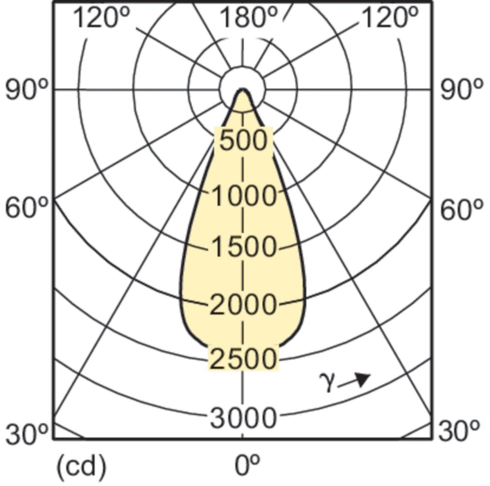 | Rozsył światła | 40° [ średni rozsył światłości] |