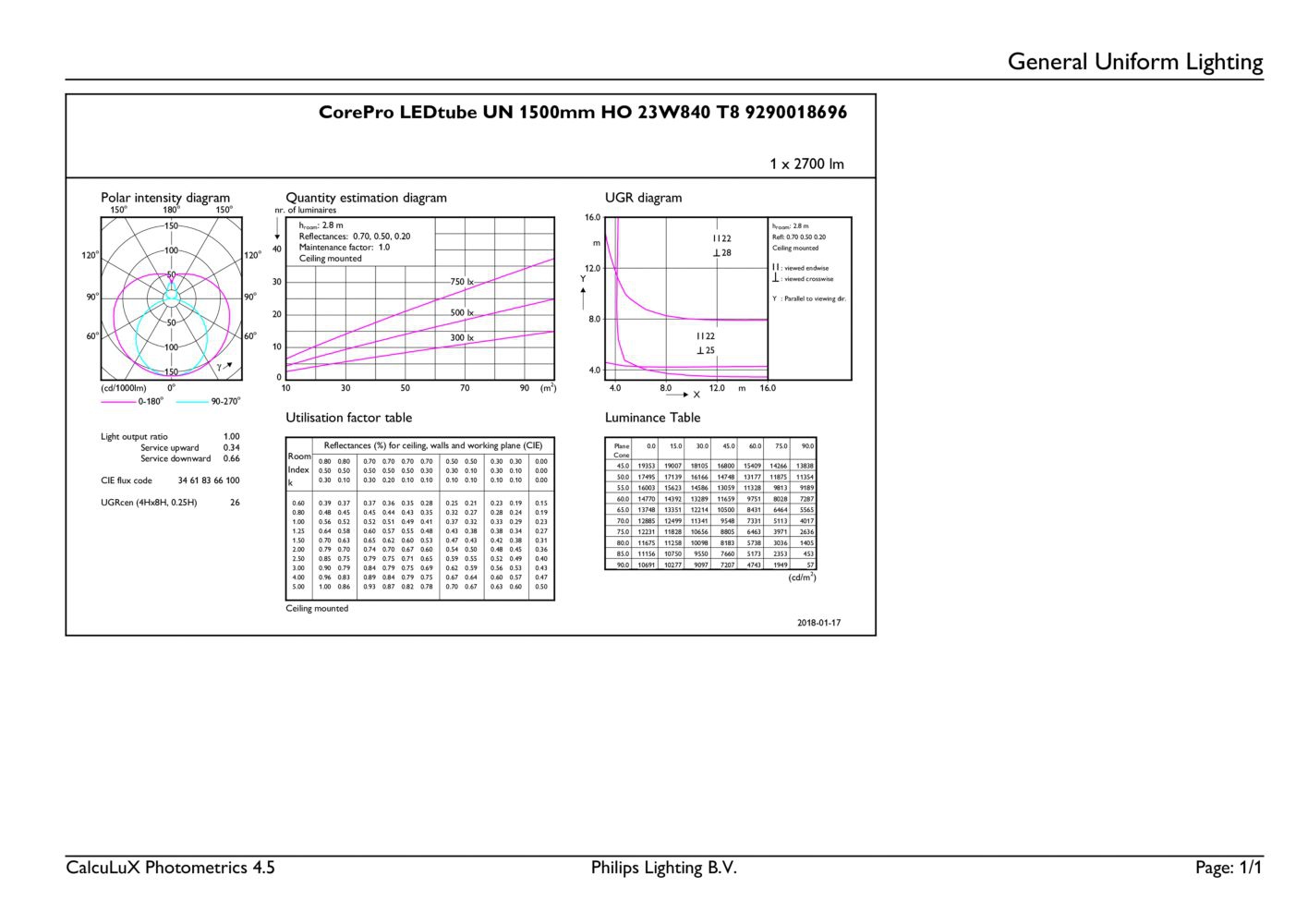 CorePro LEDtube UN 1500mm HO 23W840 T8 98388 98388 98388