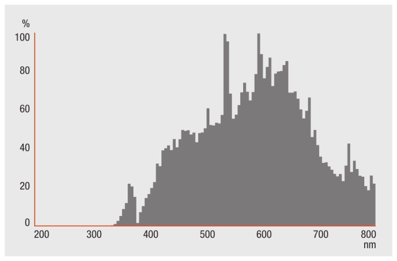 - Wartości UV znacznie poniżej maksymalnych dozwolonych progów zgodnych PN-EN 61167 dzięki filtrowi UV
